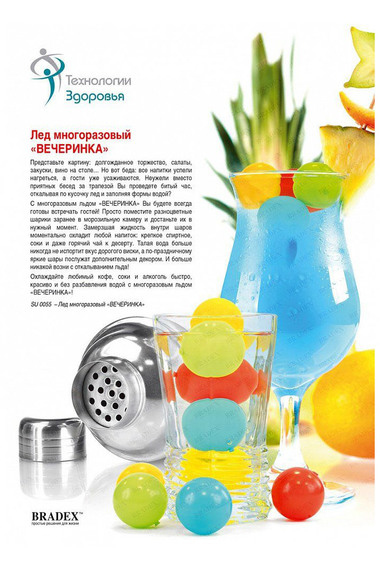 • Предварительно замороженные красочные шарики быстро снижают температуру любых напитков: горячих и холодных, алкогольных и безалкогольных.